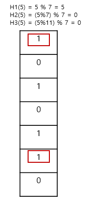 원소를 삽입하는 insert() 함수다. 해시 값에 대응하는 비트를 1로 바꿔준다.