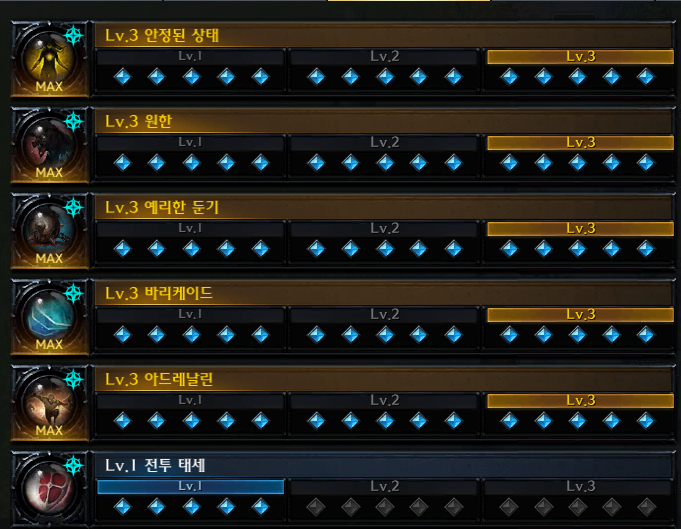 그렇다면 어빌리티 스톤에서는 읽을 전설 각인서와 겹치지 않는 능력치를 세공해야 합니다. 따라서 원한/아드레날린 혹은 원한/바리케이드, 원한/안정된 상태, 이런 돌을 깎아야 합니다.