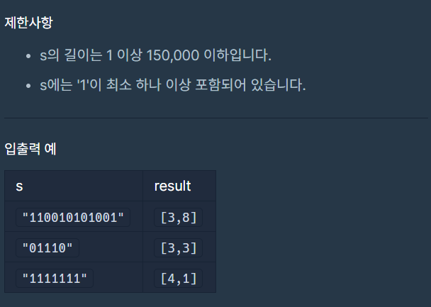 - 문자열의 길이를 이진법으로 표현 (입력 문자열이 1이 될때까지, 횟수 카운트)