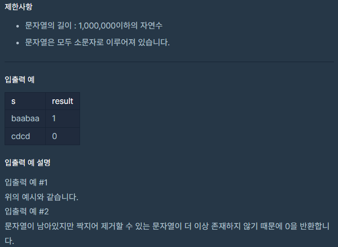 연속된 문자를 제거한다는 측면에서 스택을 활용하면 쉽게 해결할 수 있다.