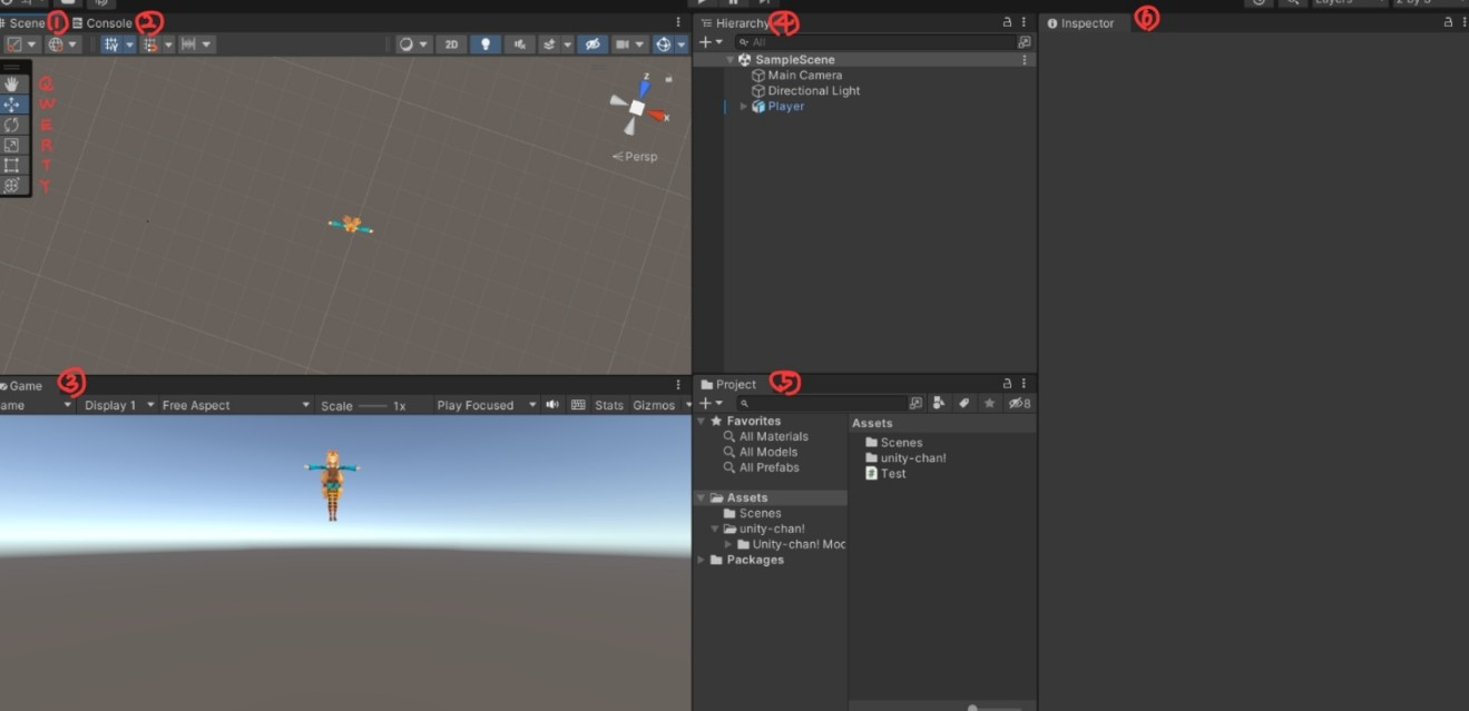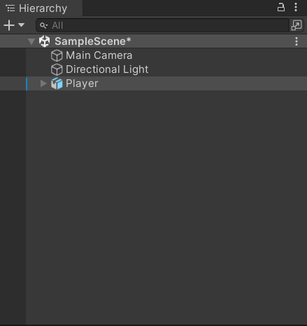 Scene에 표시되는 게임 오브젝트를 표시하고 있는 계층 창. 여기서 Scene에 사용할 게임 오브젝트를 정렬하거나 그룹화할 수 있으며, 부모-자식 계층 구조를 사용할 수도 있다.