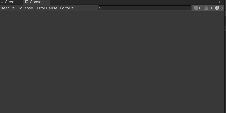 유니티가 실행되며 생성되는 메시지를 출력하는 창. 유니티 스크립트에서 Debug 명령어를 통해 콘솔에 원하는 메시지를 표시할 수도 있다. 단축키는 Ctrl + Shift + C.