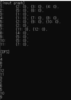 기본적인 그래프와 에지의 구현은 BFS와 동일하니 생략한다. 그리고 queue 자료구조가 stack으로 바뀐 것을 제외하고는 동일하게 구현하였다.