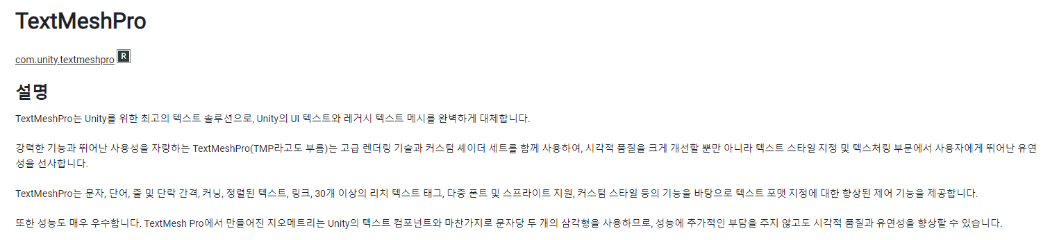 1. 정의: 유니티에서 제공하는 텍스트 렌더링 솔루션