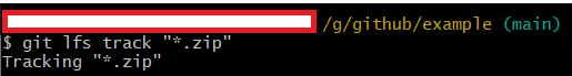 이제 특정 파일 유형을 LFS로 관리할 수 있게 설정해야 한다. 우리가 관리할 확장자는 .zip 이므로 다음과 같은 명령어를 사용하면 된다.