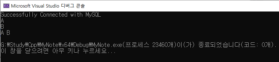 std::cout << row[0] << std::endl; // name 컬럼의 값을 출력
