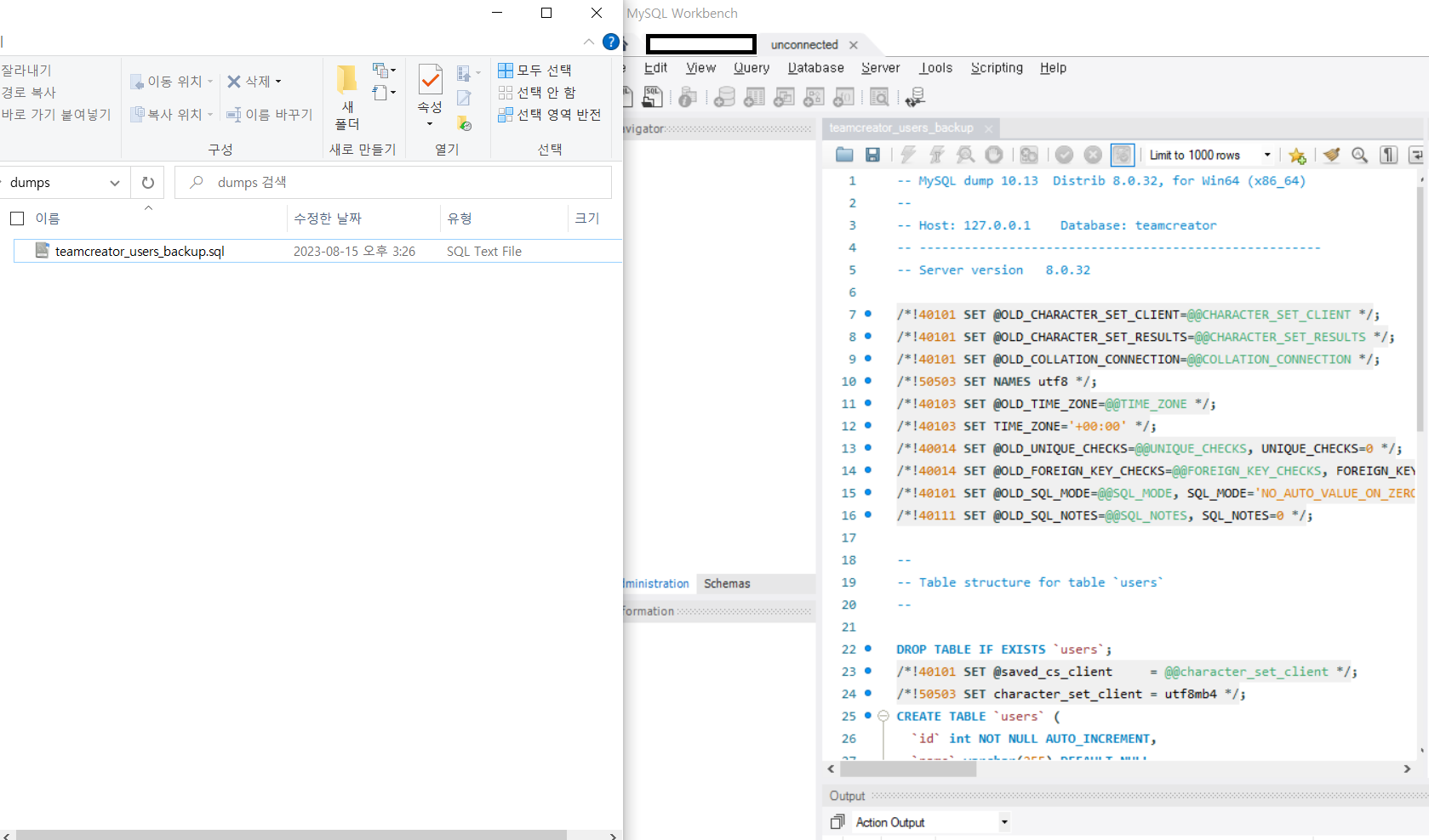 데이터를 수정하기 전에 백업을 하자. 필자는 WorkBench 8.0을 쓰고 있어서, 이를 기준으로 설명을 진행하도록 하겠다.