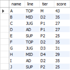 사용자의 이름, 티어, 라인을 가져오는 쿼리문을 작성해서 쿼리를 실행한다. 그리고 쿼리의 결과를 result에 저장한다.