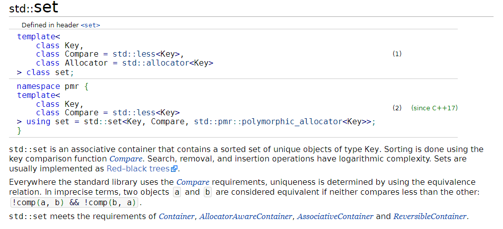 두 번째로, 중복을 지원하지 않는 컨테이너를 활용하는 방법이다. 이를 테면, 일반적으로 균형 이진 검색 트리를 기반으로 하는 std::set 컨테이너를 이용하는 방법이다. 해당 컨테이너는 key만 저장하는데, 이때 각 원소가 고유한 키 값만을 가지기 때문에 중복을 제거할 때 사용하기 용이하다.