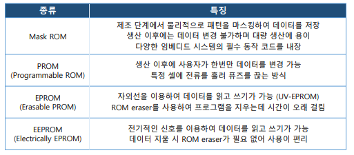 a. Mask ROM: 데이터를 수정하는 게 불가능, 고정된 데이터 저장에 사용