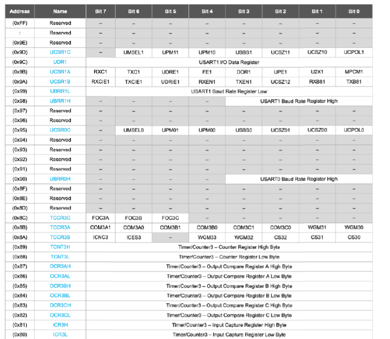 이 외에 디지털 입출력의 특수 기능을 사용하는 SFIOR(Special Function I/O Register)와 같은 여러 입출력 레지스터가 있다는 점까지 확인해 두자.