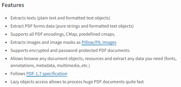 파이썬에서는 Python으로 작성된 PDF 파일을 다루기 위한 라이브러리다. 이 라이브러리를 사용하면 PDF 파일을 읽고, 쓰고, 분할하는 등 다양한 작업을 수행할 수 있다. 이번 시간에는 파일을 읽는 것이 목적이므로 관련 함수인 PdfReader에 대해 알아보자.