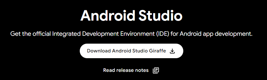 시작하기에 앞서, 원활한 디버깅을 위해 Android Studio의 SDK를 설치할 것이다. SDK는 Software Develpment Kit의 약자로서, 소프트웨어 기술자가 사용하여 특정한 응용 프로그램을 만들 수 있게 해주는 개발 도구의 집합이다. 해당 링크를 타고 들어가 안드로이드 스튜디오를 다운로드하여 주자.