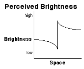 예를 들어, 경계가 분명한 이미지에서 밝기가 변하는 지점은 단위 계단 함수(Unit Step Function)와 유사하게 급격한 변화를 보인다. 그러나 인간의 시각 시스템은 실제로 에지 부근에서 대비를 과장하여 인지하기 때문에 실제와는 조금 다르게 느껴질 것이다.