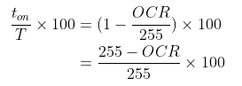 이번에는 고속 PWM 모드에서 듀티비를 구해보자. 이는 한 주기 동안 신호가 높은 상태에 있는 비율을 구하는 것이므로 다음과 같이 수식을 정리할 수 있다.
