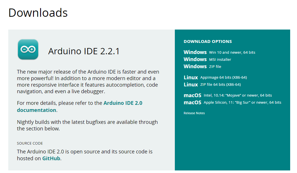 먼저 아두이노 IDE를 설치하기 위해 다음 링크를 들어가 자신의 환경에 맞는 IDE를 설치해 주자. 이때 설치 파일 경로에 한글이 포함되면 에러가 발생할 수 있으므로, 한글이 들어가지 않도록 하자.