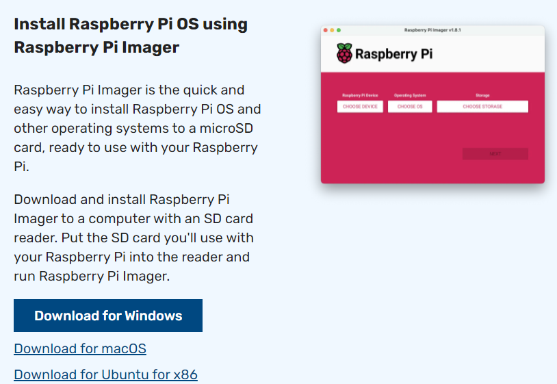 먼저 해당 링크를 타고 들어가서 라즈베리 파이 OS Imager를 설치해 주자.