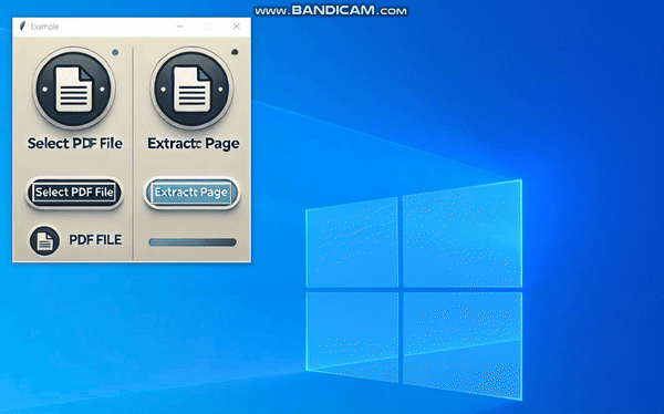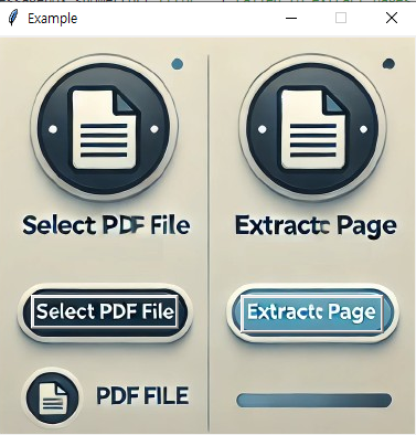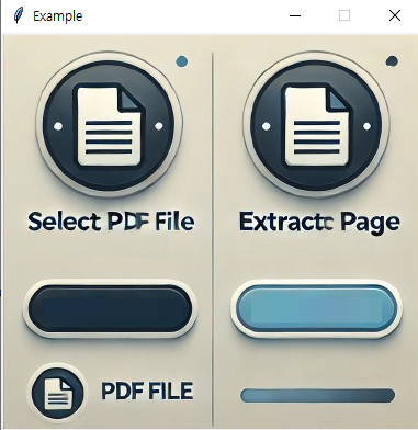 tkinter에서 버튼을 생성하기 위해 tk.Button 메서드를 활용할 수 있다. 이때 이미지를 지정할 수 있고, 버튼이 눌렸을 때 발생하는 이벤트를 command 인자에 할당하면 된다. 그리고 버튼이 눌렸을 때 파일을 선택하는 창을 띄울 수 있게 filedialog를 활용하였다. 또한 버튼을 선택한 후 Extract Page 버튼을 누르면 선택된 파일에서 페이지를 특정할 수 있게 구현하였다. 또한 PDF를 다루기 위해 PyPDF2 라이브러리를 사용하였다.
