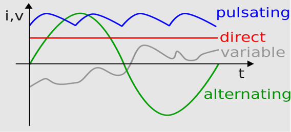 - 즉, 교류는 전류나 전압이 시간이 지남에 따라 방향이 주기적으로 바뀌고, 직류는 전류나 전압이 일정한 방향으로만 흐르는 것을 의미