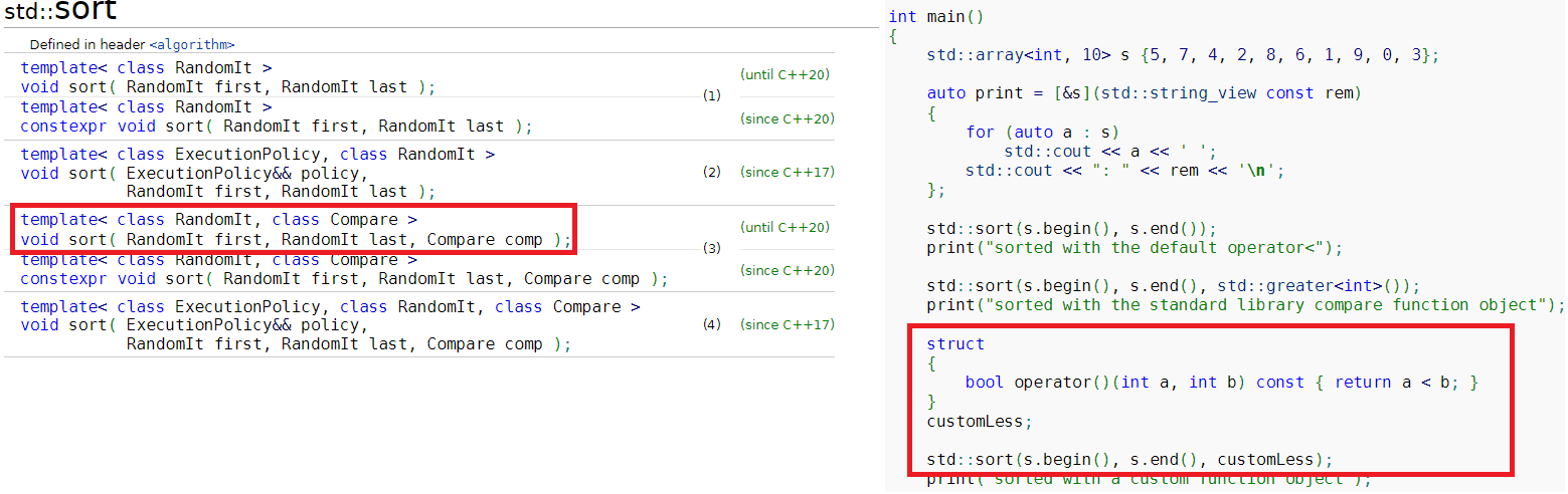 std::sort(v.begin(), v.end(), custom);