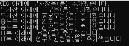tree.AddSub("IT부", "업무지원팀"); // IT부 -> 업무지원팀