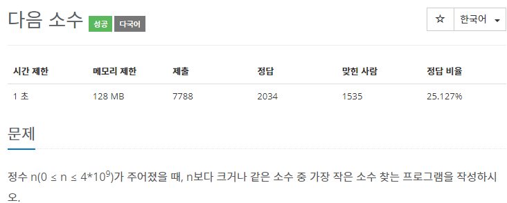 입력이 매우 클 때 소수를 찾는 문제다. 일반적인 O(N)의 시간 복잡도를 갖는 알고리즘은 시간 초과가 걸리기 때문에 효율적으로 소수를 구별해야 한다.
