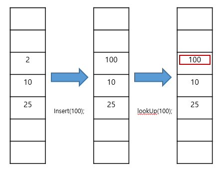특정 원소가 함수 내에 존재하는지 확인하는 lookUp() 함수다. 룩업(look up)은 특정 원소가 컨테이너에 있는지 확인하거나 또는 컨테이너에서 특정 키에 해당하는 값을 찾는 작업을 의미하는 단어로서 널리 사용되는 개념이다.