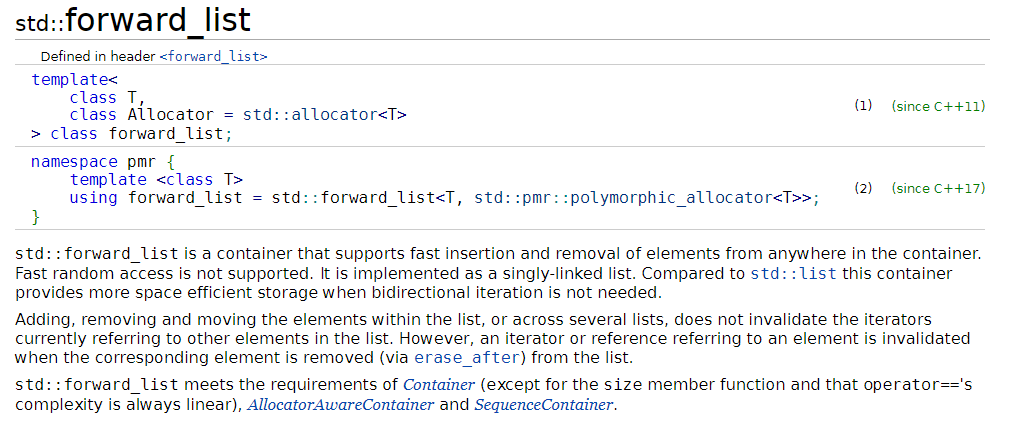 std::forward_list개요 앞서 포스팅한 std::vector, std::array같은 연속된 자료 구조에서는 데이터를 임의로 추가하거나 삭제하는 작업이 매우 비효율적이다. vector 자료 구조에서 insert() 함수와 erase() 함수를 예로 들어보자. insert() 함수를 통해 데이터를 삽입하려 하면 지정한 반복자 위치 다음의 모든 원소를 이동시키는 연산이 필요하고, erase() 함수도 특정 위치의 원소를 삭제한 후, 뒤쪽의 원소들을 모두 앞으로 이동해야 한다. 따라서 연결 리스트와 같은 연결된 자료 구조가 필요한 것이다. 기본적인 연결 리스트를 구성하기 위해서는 포인터가 필요하고, new와 delete 연산자를 이용하여 메모리를 할당하고 해제할 수 있어야 한다. C++에서는 기본..
